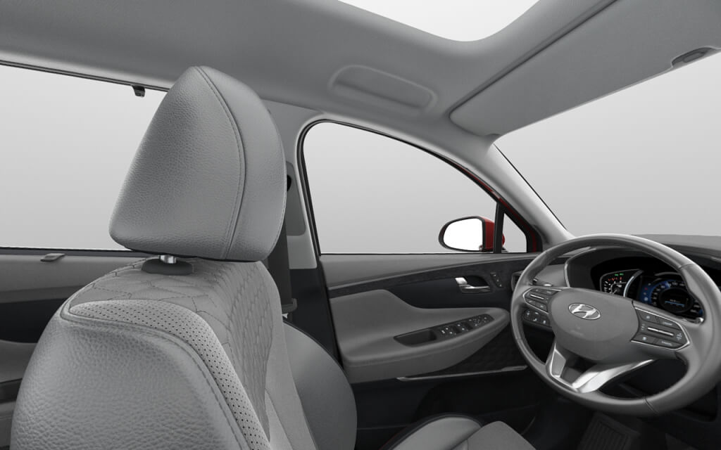 Kahevärviline (epressopruun ja pruunikashall) Espresso - Sepia Gray salong (YPJ): Hallid nahkistmed oranžide kontrastõmblustega, reljeefse pinnaga kivihall armatuurlaud, kunstnahast õmblustega uksepolster, hall maleeritud trikotaažtekstiilist laepolster